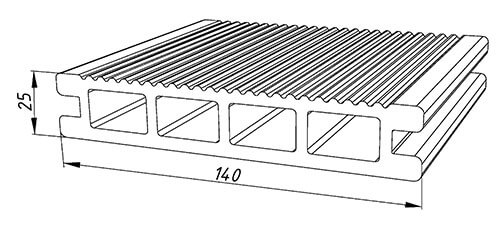 - декинг обладает ячеистой структурой, которая увеличивает его жесткость по сравнению с заборной доской;